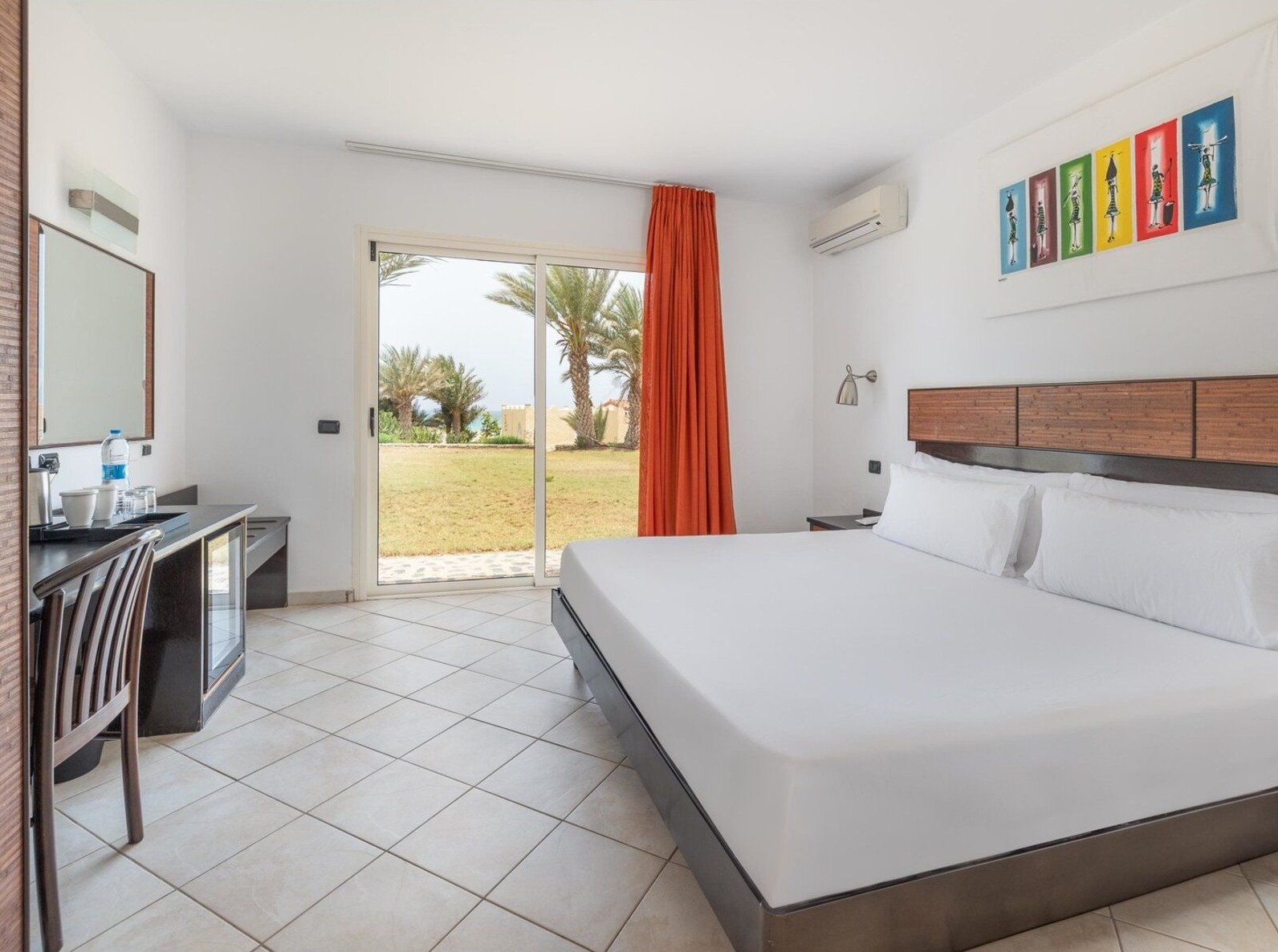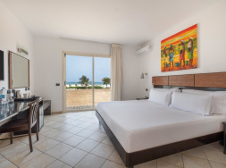• Doppelzimmer, Meerblick, Poolblick, ca. 25 m², Gesamtanzahl der Räume in diesem Zimmertyp: 1, Aufteilung wie folgt: 1 Schlafzimmer, Babybett: ohne Gebühr, Anfrage notwendig, Klimaanlage: ohne Gebühr, individuell regelbar, zentral gesteuert, kalt, Fußboden: Fliesenboden, Safe: gegen Gebühr, Kühlschrank: ohne Gebühr, Minibar: Wasser, Telefon, Fernseher: im Schlafzimmer, Reinigungsservice: täglich, ohne Gebühr, Dusche, WC, Föhn, Balkon oder Terrasse: mit Sitzgelegenheit