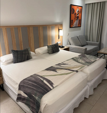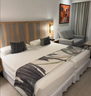 - Doppelzimmer, ca. 30 m², Gesamtanzahl der Räume in diesem Zimmertyp: 1, Aufteilung wie folgt: kombiniertes Wohn-/Schlafzimmer, 2 Einzelbetten (110x200cm), 1 Schlafsofa, Klimaanlage: zentral gesteuert, Safe: ohne Gebühr, Deckenventilator, Getränkespender, Wasserkocher, Minibar, Telefon, Internet: WLAN/WiFi: ohne Gebühr, Fernseher: Sat-TV, Dusche, separates WC, Föhn, Balkon oder Terrasse: mit Sitzgelegenheit