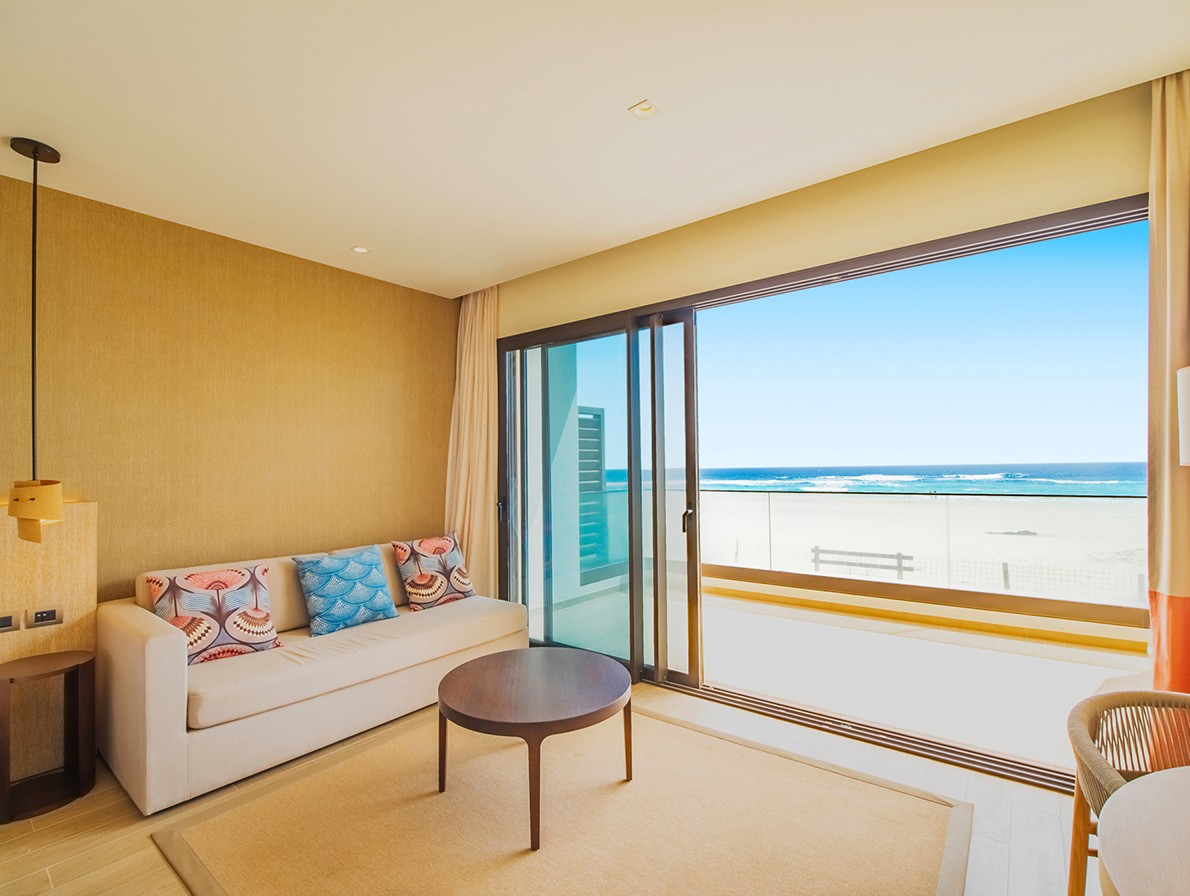 - Klimaanlage, Kühlschrank, TV, WLAN, Safe. Dusche, WC, Föhn. Terrasse mit Zugang zum Pool, wahlweise mit Meerblick (JMS bis zum 30.04.26). Max. 2E+2K, (JSS, ca. 45 qm)