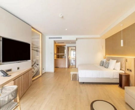 - Klimaanlage, Kühlschrank, TV, WLAN, Safe. Dusche, WC, Föhn. Terrasse mit Zugang zum Pool, wahlweise mit Meerblick (DMS bis zum 30.04.26). Max. 2E+1K, (DDS, ca. 36 qm)