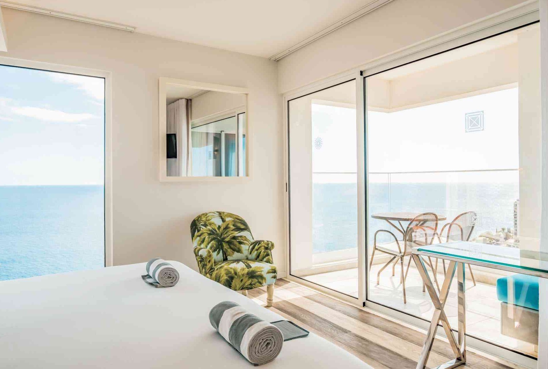 - Bei ansonsten gleicher Ausstattung wie die Doppelzimmer seitlicher Meerblick, befinden sich die Doppelzimmer seitlicher Meerblick obere Etage (DOS) oberhalb der 10. Etage und bieten weitere Annehmlichkeiten wie Bademantel und Slipper, Zugang zu Sauna und Türkischem Bad, sowie Early Check-in und Late Check-out (je nach Verfügbarkeit).
