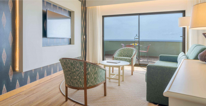 - 41-45 qm, Doppel, Superior, Etage, 4., 5., 6., 7., 8., Meerblick, Schreibtisch, Twinbett, Dusche, Haartrockner, Klimaanlage, Minibar, Safe, TV, WLAN, Kaffee/Tee, Balkon (möbliert)