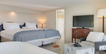 - 61-70 qm, Suite, Etage, 4., 5., 6., 7., 8., Meerblick (seitlich), separates Schlafzimmer, kombinierter Wohn-/Schlafraum, Schreibtisch, Doppelbett, Sofabett, Dusche, Haartrockner, Klimaanlage, Minibar kostenpflichtig, Safe, TV, WLAN, Kaffee/Tee, Balkon (möbliert)