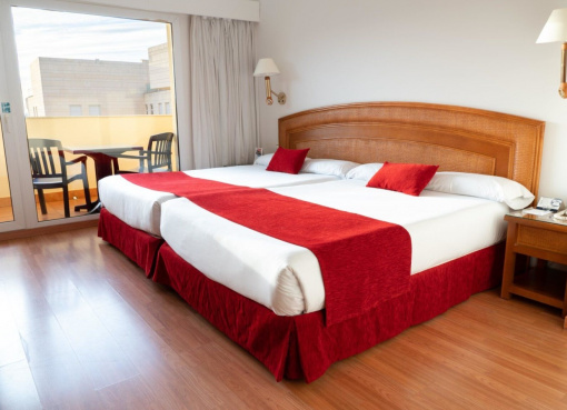 - Doppelzimmer, Nichtraucherzimmer, im Hauptgebäude, ca. 28 m², Gesamtanzahl der Räume in diesem Zimmertyp: 1, Aufteilung wie folgt: 1 Schlafzimmer, 2 Doppelbetten (135x200cm), Babybett: Anfrage notwendig, Klimaanlage: ohne Gebühr, saisonabhängig, individuell regelbar, Heizung: saisonabhängig, individuell regelbar, Fußboden: Laminat, Safe: gegen Gebühr, Deckenventilator, Schreibtisch, Kaffee-/Teezubereiter, Minibar: gegen Gebühr, Telefon, Internet: WLAN/WiFi: ohne Gebühr, Fernseher: Flatscreen, deutsches Programm, Sat-TV, Roomservice: gegen Gebühr, Badewanne, WC, Föhn, Balkon: mit Sitzgelegenheit