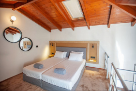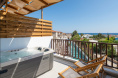 - Diese seit Sommer 2024 renovierten Maisonetten bestehen aus 2 Schlafräumen, verteilt auf 2 Ebenen ohne Verbindungstür, mit jeweils einem angrenzenden Badezimmer sowie Walk-In Dusche/WC, Föhn, Bademänteln und Slipper, Kosmetikspiegel und Pflegeprodukten. Zu den weiteren Ausstattungsmerkmalen der geräumigsten Zimmer zählen zwei 50" Smart-TV mit HDMI-Anschluss, Ganzkörperspiegel, individuell regulierbare Klimaanlage, Telefon, Safe, Minibar (tägliche Auffüllung der Minibar mit 2 Flaschen Wasser, 2 Softdrinks, 2 Bieren sowie die Bereitstellung einer 1L Wasserflasche inklusive), Kaffee- und Teeset mit täglicher Auffüllung, eine Espresso-Maschine (Auffüllung mit 2 Kapseln pro Tag) sowie ein neu möblierter Balkon mit seitlichem Meerblick (2SM/M2I).
