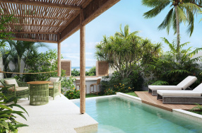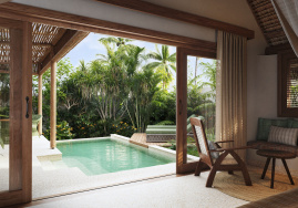 - Villa, Nichtraucherzimmer, Mindestalter im Zimmer: 18 Jahre, Poolseite, Gartenseite, Poolblick, Gartenblick, ca. 74 m², Gesamtanzahl der Räume in diesem Zimmertyp: 1, Aufteilung wie folgt: kombiniertes Wohn-/Schlafzimmer, 1 Queen Size Bett, Klimaanlage: ohne Gebühr, Januar - Dezember, individuell regelbar, Fußboden: Fliesenboden, Safe: ohne Gebühr, Standventilator, Kühlschrank: ohne Gebühr, Kaffee-/Teezubereiter, Internet: WLAN/WiFi: ohne Gebühr, Roomservice: täglich 07:00 Uhr - 23:00 Uhr, gegen Gebühr, Reinigungsservice: täglich, ohne Gebühr, Dusche, Außendusche, WC, Terrasse: mit Liegen, mit direktem Poolzugang