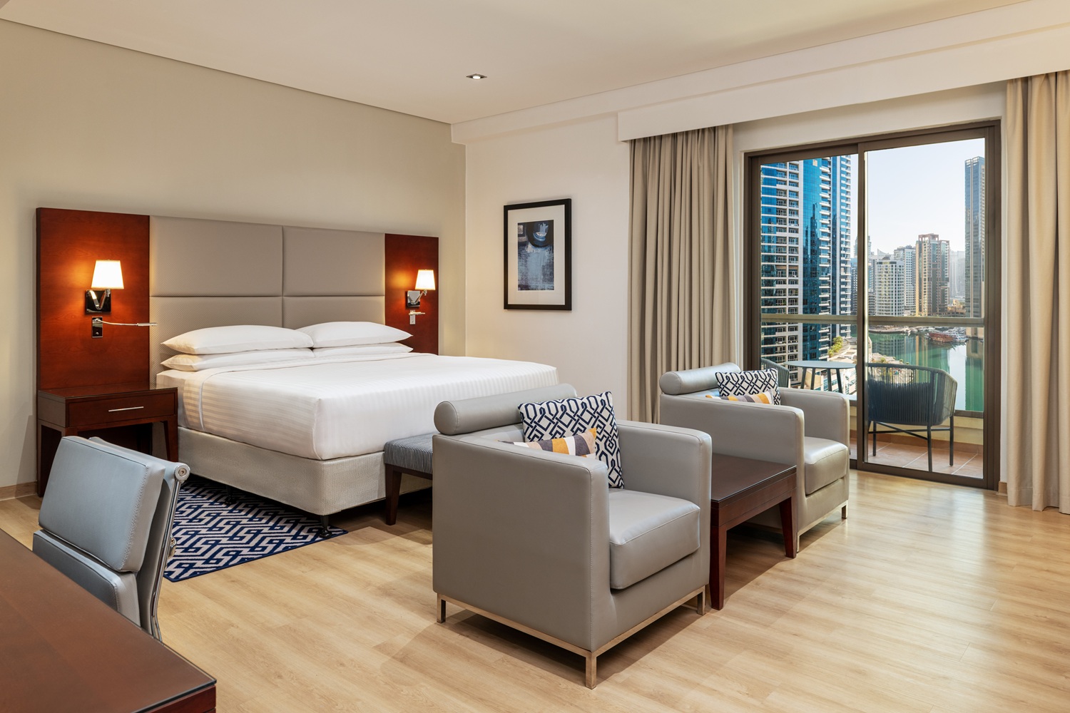 - 41-45 qm, Stadtblick, Couch, Badewanne, Bidet, WC, Haartrockner, Fliesen, Klimaanlage, Minibar kostenpflichtig, Safe, Bügelbrett, Bügeleisen, TV, WLAN, Wasserkocher, Kaffee/Tee, Zutritt zur Club-Lounge