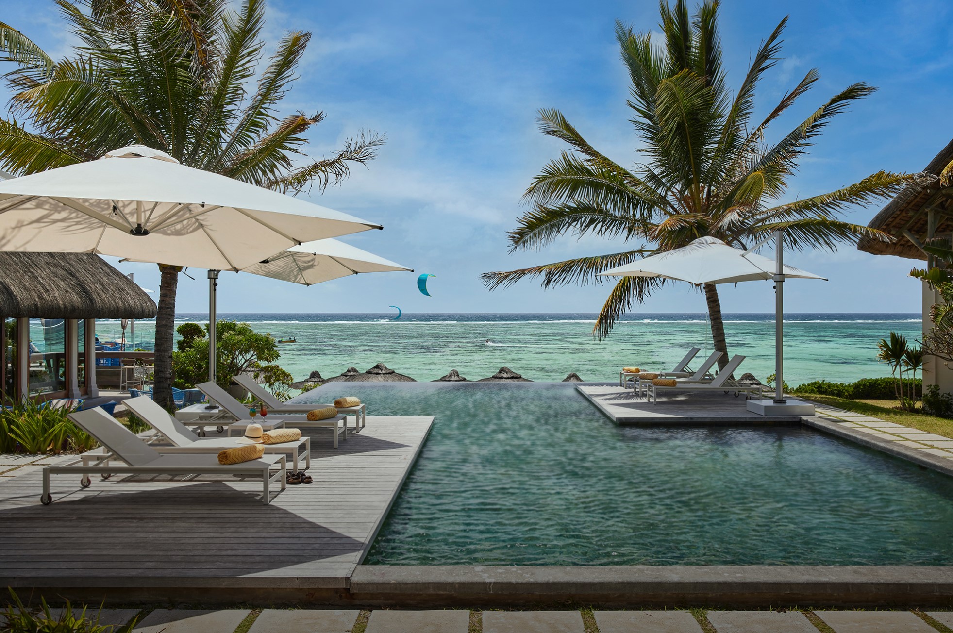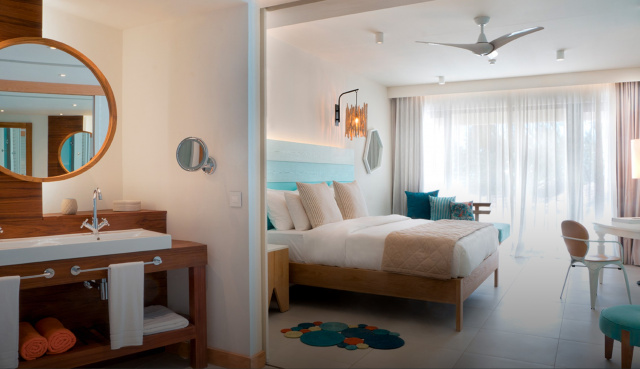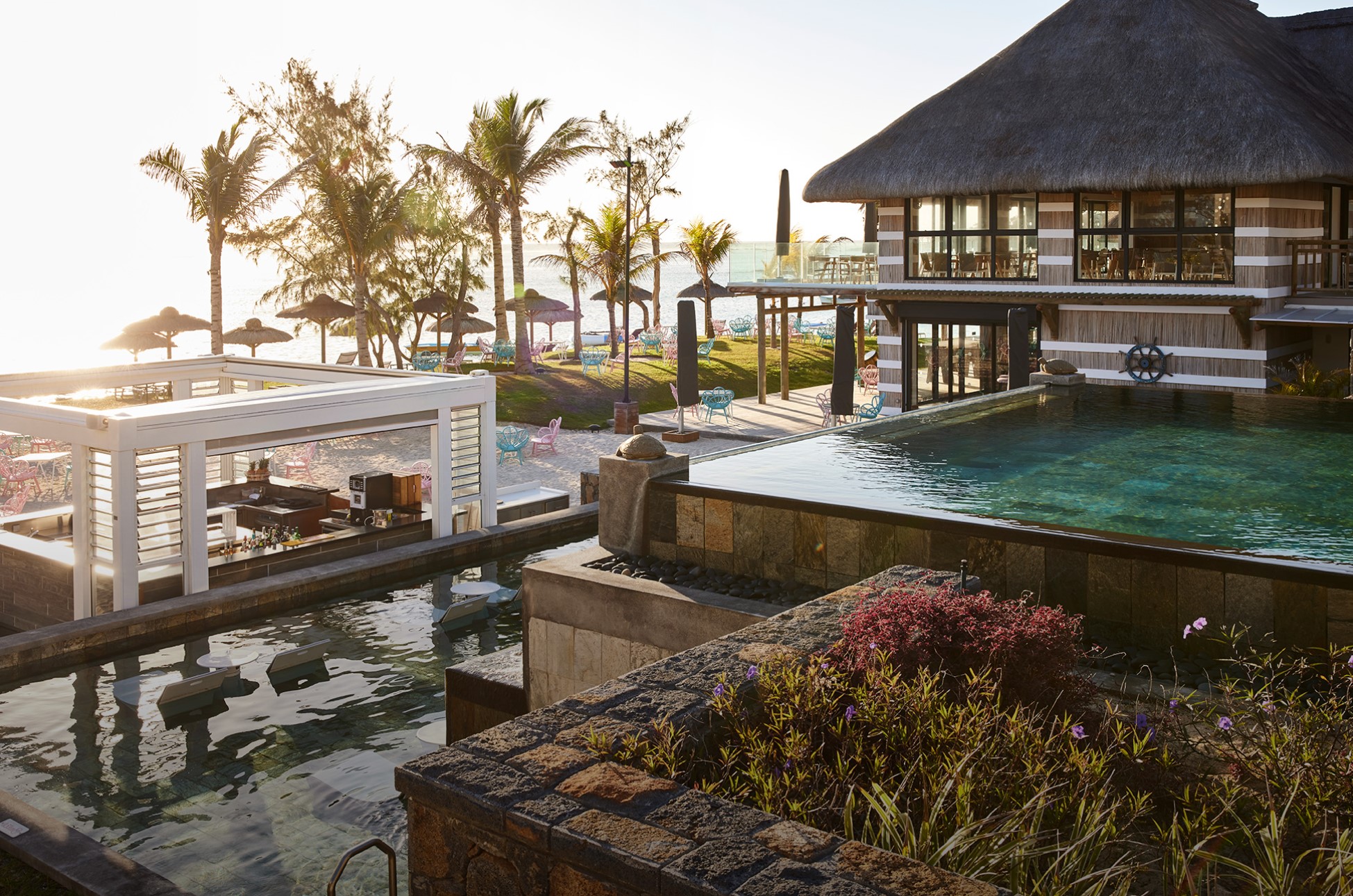 Mauritius - Belle Mare / Ostküste | Das sonnendurchflutete Strandhotel überzeugt mit seiner traumhaften Lage und mit seinen wunderschönen Chill-out Pools. Erholung und Entspannung ist garantiert. Die Zimmer im boho-chic Dekor und das All-Inclusive-Konzept überzeugen.