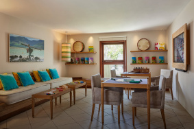 - 71-80 qm, Strandlage, Meerblick, Nichtraucher, Dusche, Badewanne, Haartrockner, Fliesen, Klimaanlage, individuell regulierbar, Minibar, Safe, TV (Sat-TV, Flachbildschirm), Kaffee/Tee, Balkon oder Terrasse (möbliert)
