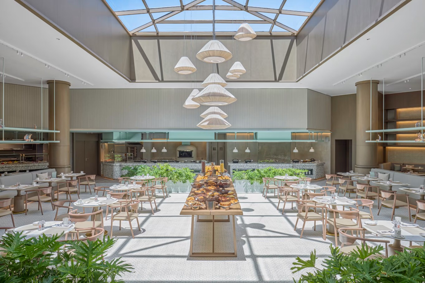 All Inclusive: Frühstück, Mittagessen, Abendessen, Snacks Frühstück: täglich 07 Uhr-10:30 Uhr, Buffet Mittagessen: täglich 12:30 Uhr-14:30 Uhr, Buffet Abendessen: täglich 19 Uhr-22 Uhr, Buffet Das Hauptrestaurant „The Kitchen“ serviert internationale und orientalische Küche in Buffet- und Menüform. Auf Anfrage und gegen Gebühr sind spezielle Optionen wie Diätküche, glutenfreie, laktosefreie, vegetarische und vegane Gerichte sowie Kinderbuffet, Kindermenüs und saisonale Speisen verfügbar. Geöffnet täglich von 07 bis 22 Uhr, klimatisierbar, mit Terrasse am Pool und separatem Raucherbereich. Afternoon Tea ist ebenfalls gegen Gebühr erhältlich. Zur Auswahl stehen außerdem drei Bars: Loungebar „Social Creatures“: 12-23 Uhr Lobbybar „Dryp Café“: 06-02 Uhr Poolbar „Floatini“ (Outdoor): 10-18 Uhr