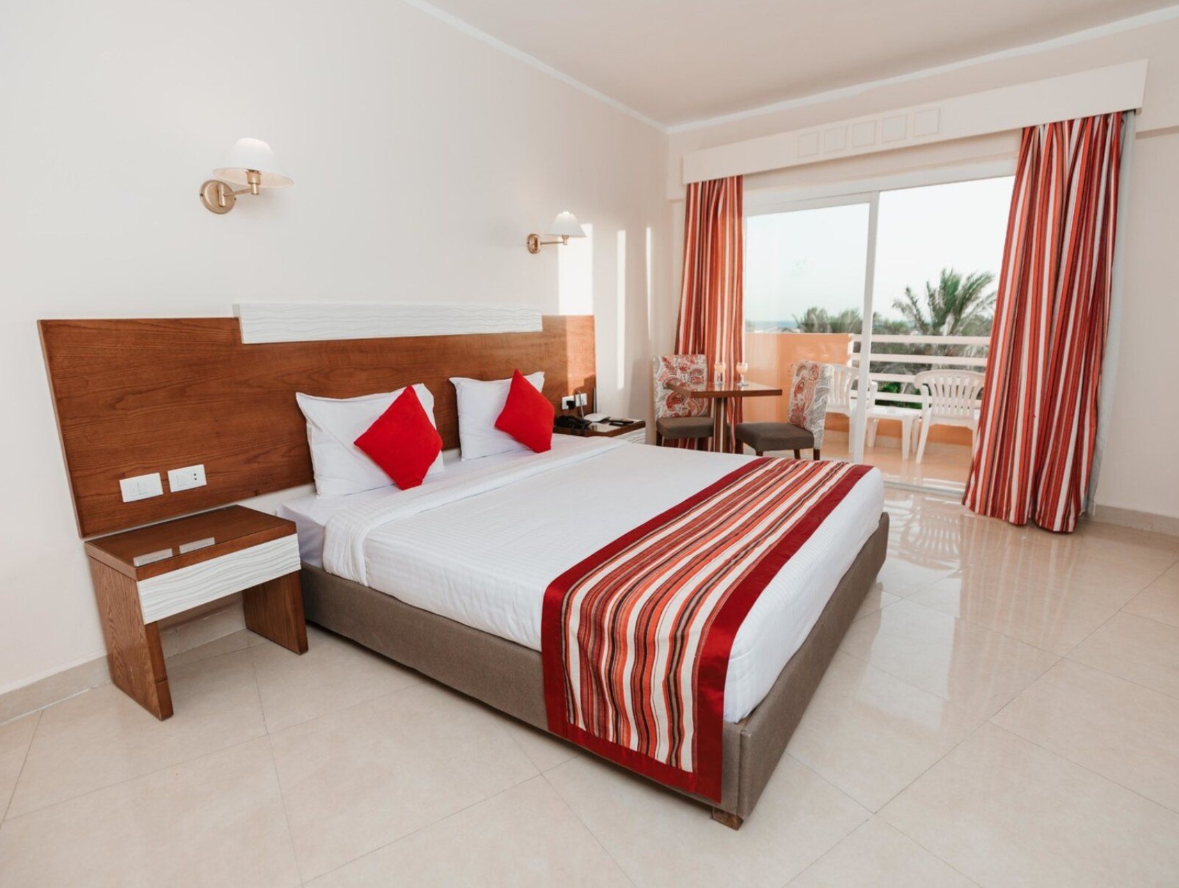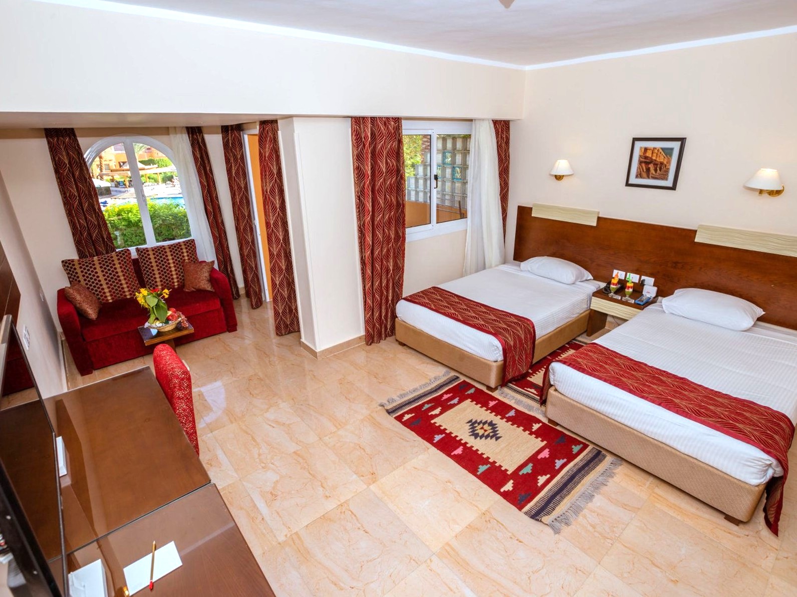 - 26-30 qm, Doppel, Standard, Nebengebäude, Gartenblick, Poolblick, Doppelbetten (1 Doppel- oder 2 Einzelbetten), Sofabett, Dusche, Haartrockner, Fliesen, Klimaanlage, Safe, TV, Kühlschrank, Balkon oder Terrasse (möbliert)