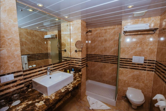 - 26-30 qm, Doppel, Meerseite, Doppelbetten (1 Doppel- oder 2 Einzelbetten), Dusche, Haartrockner, Fliesen, Klimaanlage, Safe, TV, Kühlschrank, Balkon (möbliert)