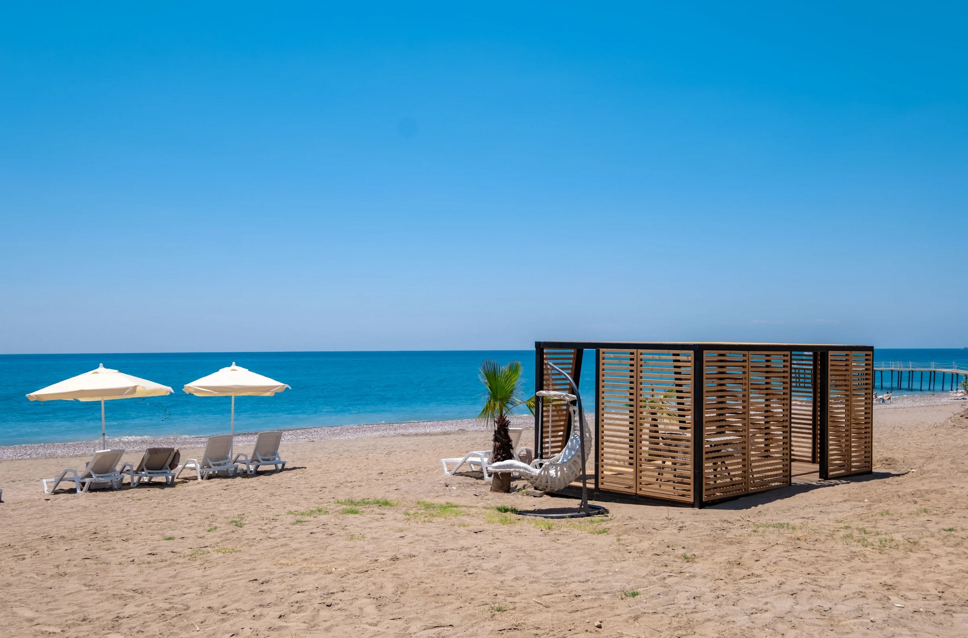 - Direkt am breiten Sandstrand (mit Kieseln durchsetzt) von Side-Kizilagac.