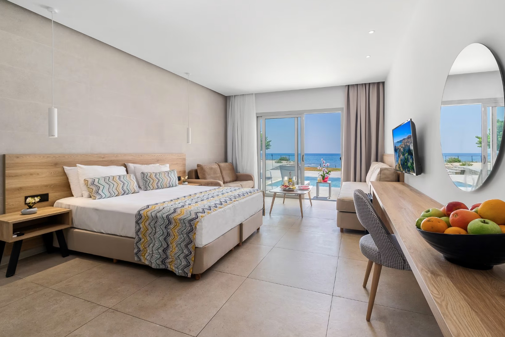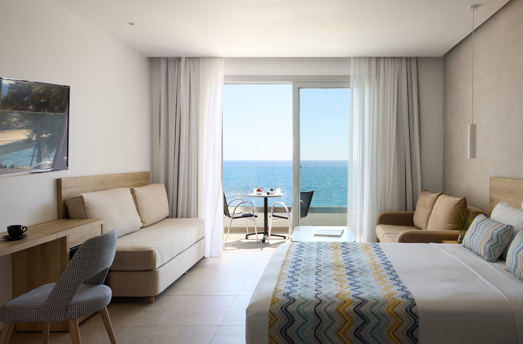 - suite junior, vue mer, rénovée, douche, sèche-cheveux, climatisation, mini-réfrigérateur, coffre-fort (payant), 1 TV, balcon ou terrasse