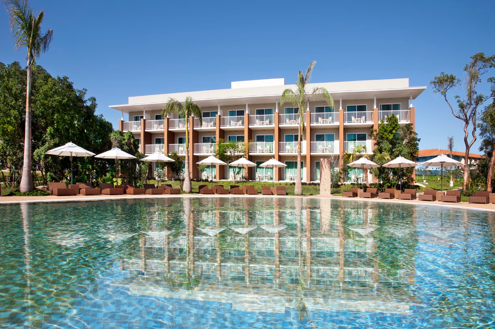 - 36-40 m², chambre double, vue sur la piscine, 1 salle de bains, douche, WC, sèche-cheveux, climatisation, mini réfrigérateur, coffre-fort, planche à repasser, fer à repasser, 1 TV (TV par satellite), machine à café, balcon ou terrasse
