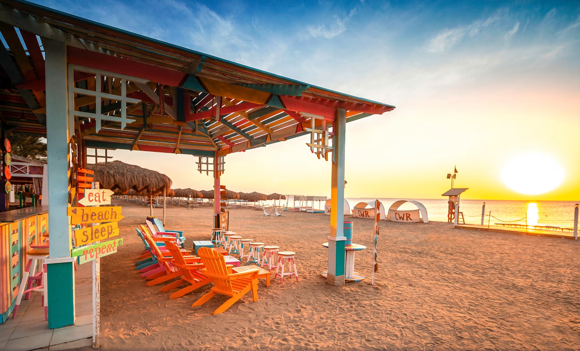 Mer Rouge - Hourghada / Soma Bay | Le spacieux complexe du club, conçu dans le style des Caraïbes, inspire toute la famille. Son emplacement fantastique sur la magnifique plage de sable peu profonde d'Abu Soma promet des vacances d'un genre particulier et vous gâte avec la cuisine arabe et caribéenne.