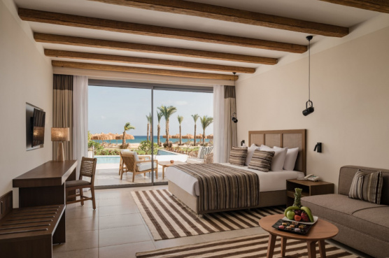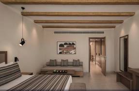 - 51-60 m², familles, avec porte communicante, Deluxe, vue sur la piscine, chambre à coucher séparée, lit double (queen-size), douche, WC, peignoir, chaussures de bain, sèche-cheveux, miroir cosmétique, climatisation, minibar payant, coffre-fort, TV (TV par satellite), bouilloire, café/thé, terrasse, accès direct à la piscine, piscine partagée, service de réveil nocturne, à l'arrivée en chambre fruits, petits gâteaux