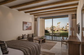 - 36-40 m², chambre double, superior, vue sur la piscine, lits double (1 lit double ou 2 lits simples), douche, WC, peignoir, chaussures de bain, sèche-cheveux, miroir cosmétique, climatisation, minibar payant, coffre-fort, TV (TV par satellite), bouilloire, café/thé, terrasse, accès direct à la piscine, piscine partagée, service de réveil nocturne, à l'arrivée en chambre fruits, petits gâteaux