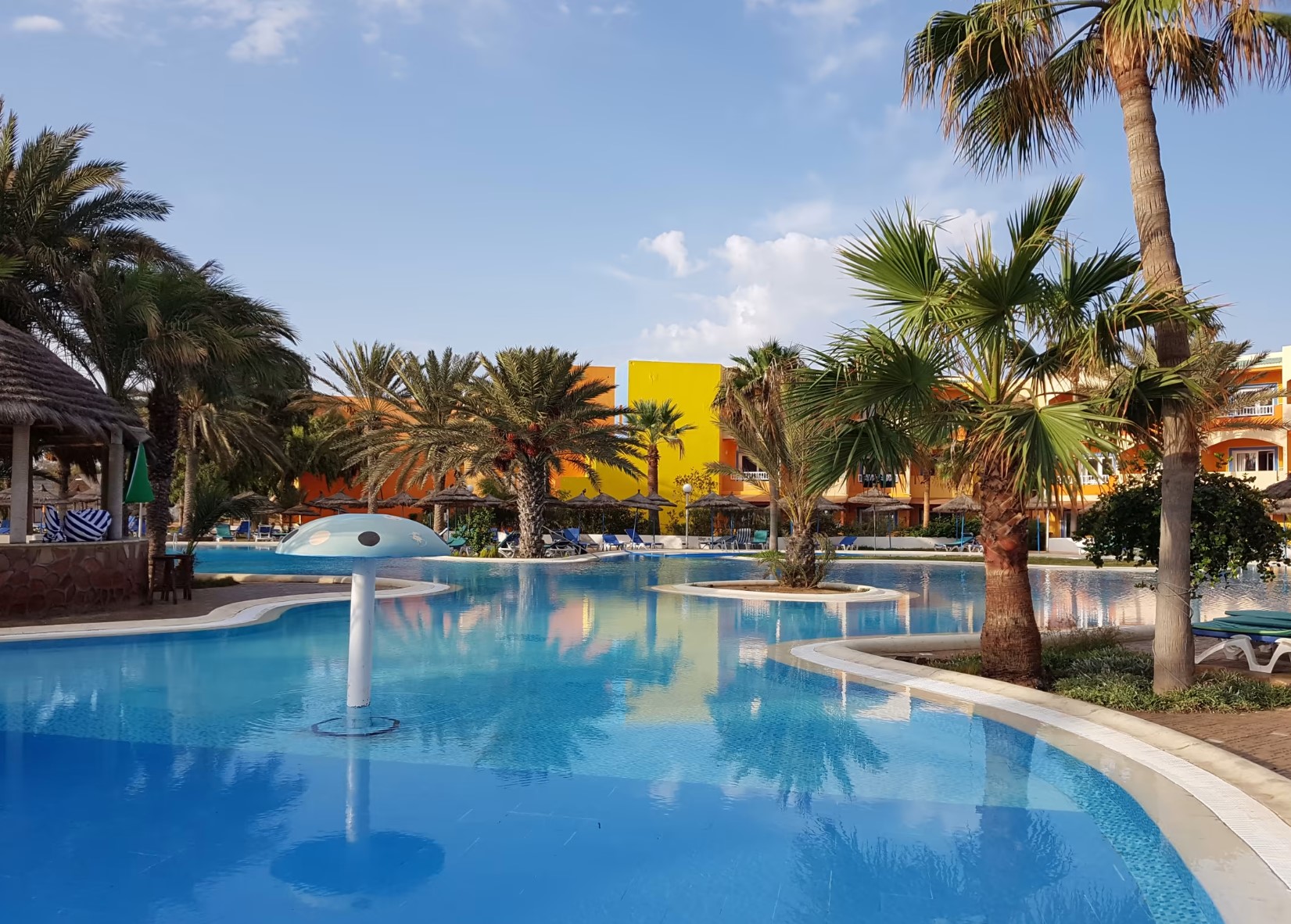 Tunisie - Djerba | Le complexe ressemble à une merveilleuse oasis sur la belle île de Djerba. Il se trouve directement sur la plage naturelle et est entouré d'un jardin de palmiers et d'oliviers. Les familles y passeront de merveilleuses vacances, car les plus petits y trouveront un parc aquatique.