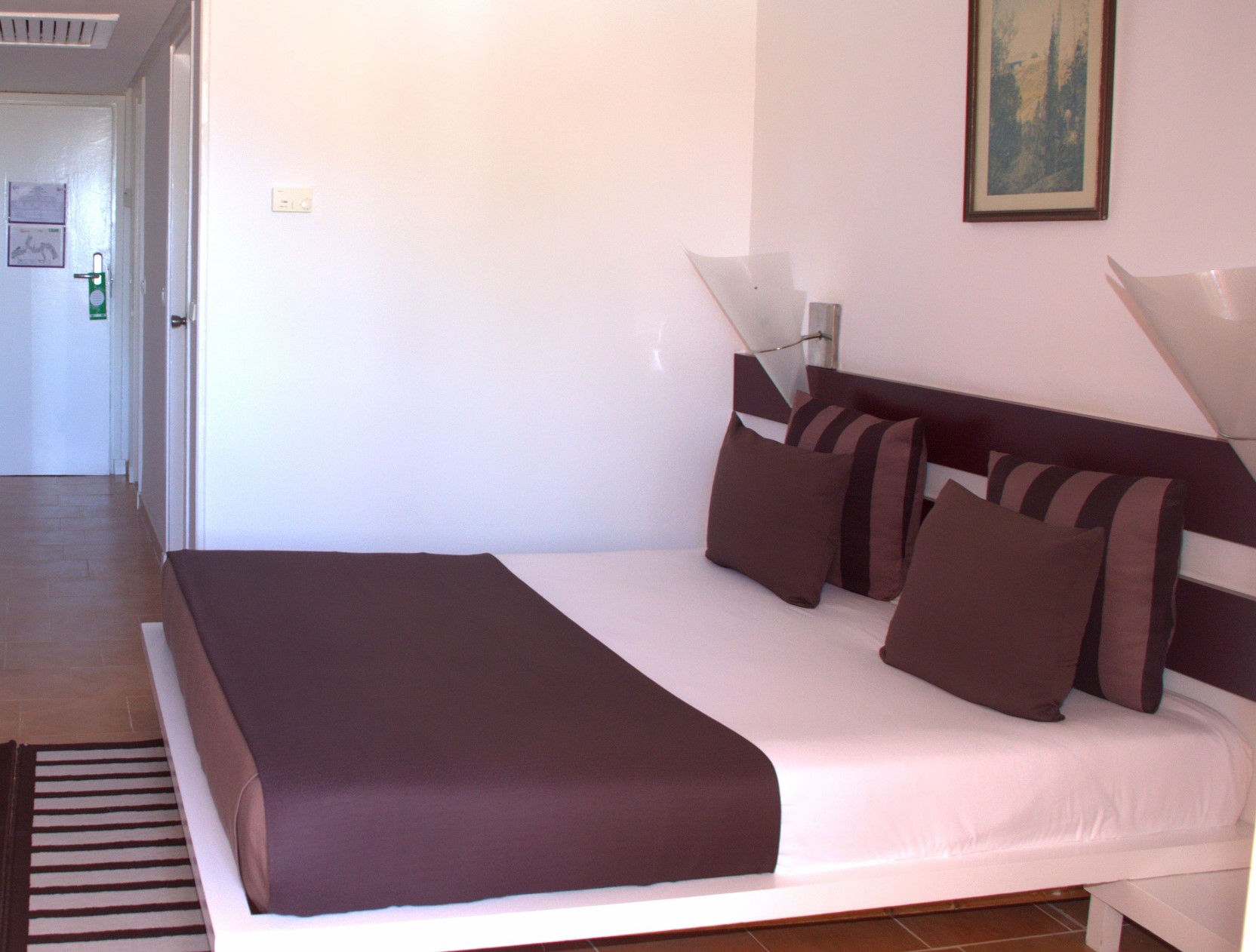 - 26-30 m², familles, vue sur le jardin, 2 chambres à coucher séparées, 2 lits simples, 1 lit double, 1 salle de bains, douche ou baignoire, 1 WC, sèche-cheveux, carrelage, climatisation, commande centrale, env. 15.6.-30.9., chauffage, commande centrale, env. 15.12.-31.3., minibar, remplissage à l’arrivée, coffre-fort (payant