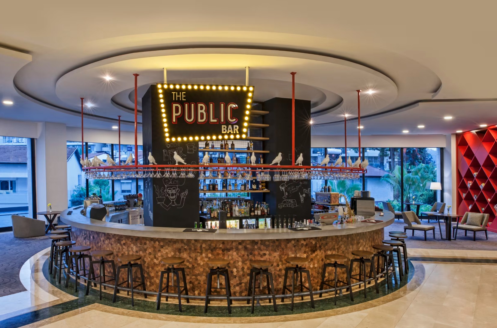 - Tout compris : petit-déjeuner, petit-déjeuner tardif, déjeuner, dîner, collations, collation de minuit, gâteaux/pâtisseries, glaces, boissons non alcoolisées sélectionnées, boissons alcoolisées nationales sélectionnées, boissons alcoolisées internationales sélectionnées