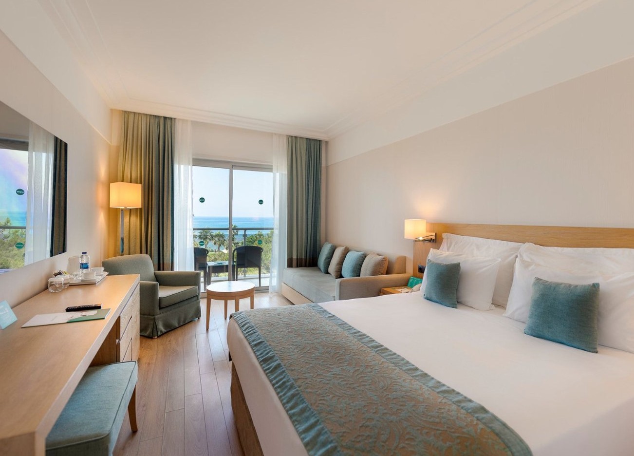 - Chambre double, dans le bâtiment principal, côté mer, vue sur la mer, vue sur la mer limitée, env. 27 m², dernière rénovation complète en 2013, 1 lit double (160x200cm), 1 canapé-lit (90x190cm), lit bébé : sans frais, si tout compris, climatisation : sans frais, si tout compris, réglage individuel, froid, chaud, sol : stratifié, coffre-fort : sans frais, si tout compris, bouilloire électrique, minibar : sans frais, si tout compris, boissons sans alcool : si tout compris, eau : sans frais, si tout compris, réapprovisionnement du minibar : tous les jours, téléphone, internet : WLAN/WiFi : sans frais, si tout inclus, télévision : programme allemand, Sat-TV, service de chambre : contre frais, douche, WC, peignoir, pantoufles : sans frais, si tout inclus, sèche-cheveux, miroir cosmétique, balcon : avec possibilité de s'asseoir