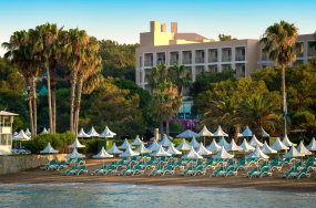 Turquie du sud - Side | TOP 12 | Le complexe hôtelier idyllique se trouve au milieu d'une forêt de pins qui s'étend jusqu'à la mer. De nombreux restaurants à la carte et des soirées à thème changeantes garantissent les plaisirs culinaires.