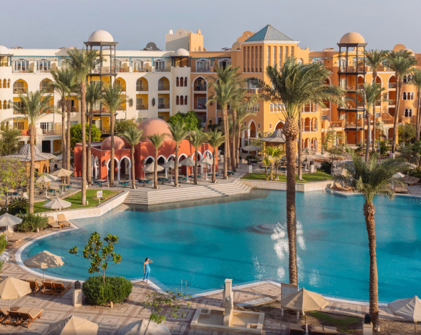 - The Grand Resort est situé à Hurghada, une station balnéaire populaire sur la côte de la mer Rouge en Égypte. L'hôtel de style mauresque du groupe RED SEA HOTELS dispose de 828 chambres et est séparé de son hôtel jumeau "Grand Hotel" par le "Grand Mall" adjacent et une rue. Ici se trouve la plage, distante d'environ 150 m, qui peut être utilisée en commun. Dans le "Grand Mall" se trouvent divers restaurants, cafés, bars, magasins et possibilités de divertissement.