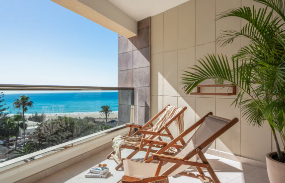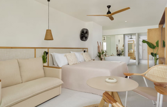 - 51-60 qm, Suite, für Erwachsene ab 16 Jahre, Meerblick, Sofabett, 1 Bad, Dusche, WC, Bademantel, Badeslipper, Haartrockner, Klimaanlage, Minibar, Auffüllung täglich, Softdrinks, Bier, Säfte, Wasser, Snacks, Safe, TV (Sat-TV), WLAN, Kaffeemaschine, Balkon oder Terrasse (möbliert)