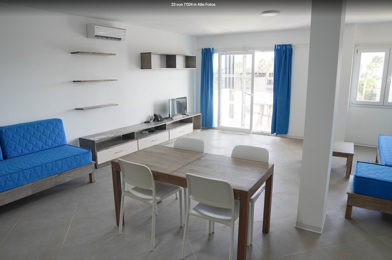 - Wohnbereich, 2 sep. Schlafzimmer, Klimaanlage, Kühlschrank, Telefon, TV, WLAN, Mietsafe. Dusche, WC, Föhn. Balkon/Terrasse. Max. 4E