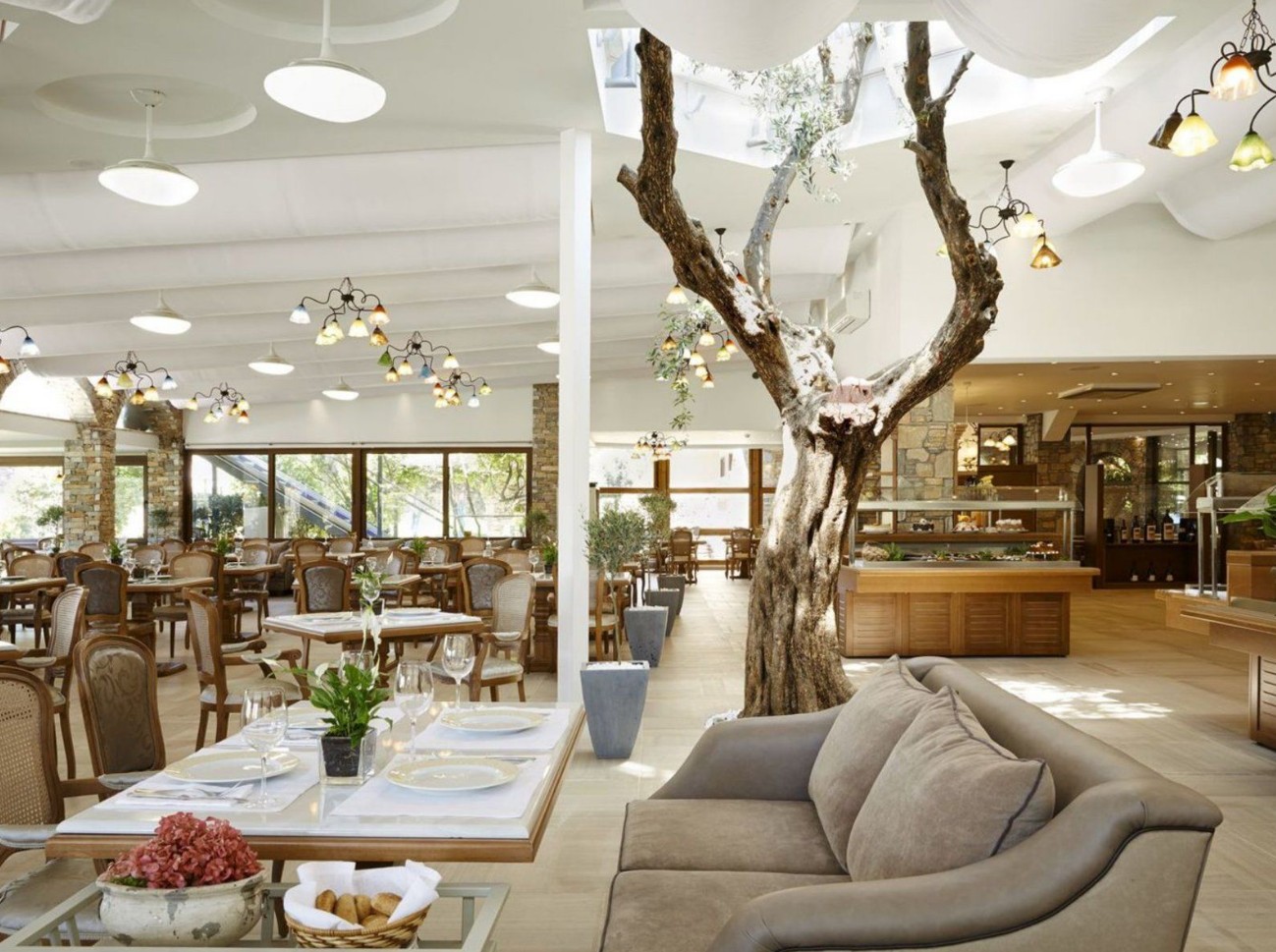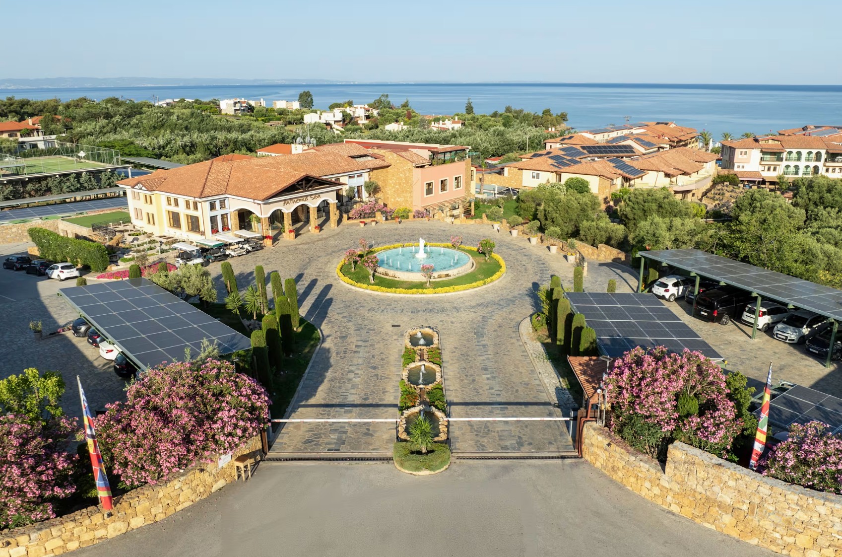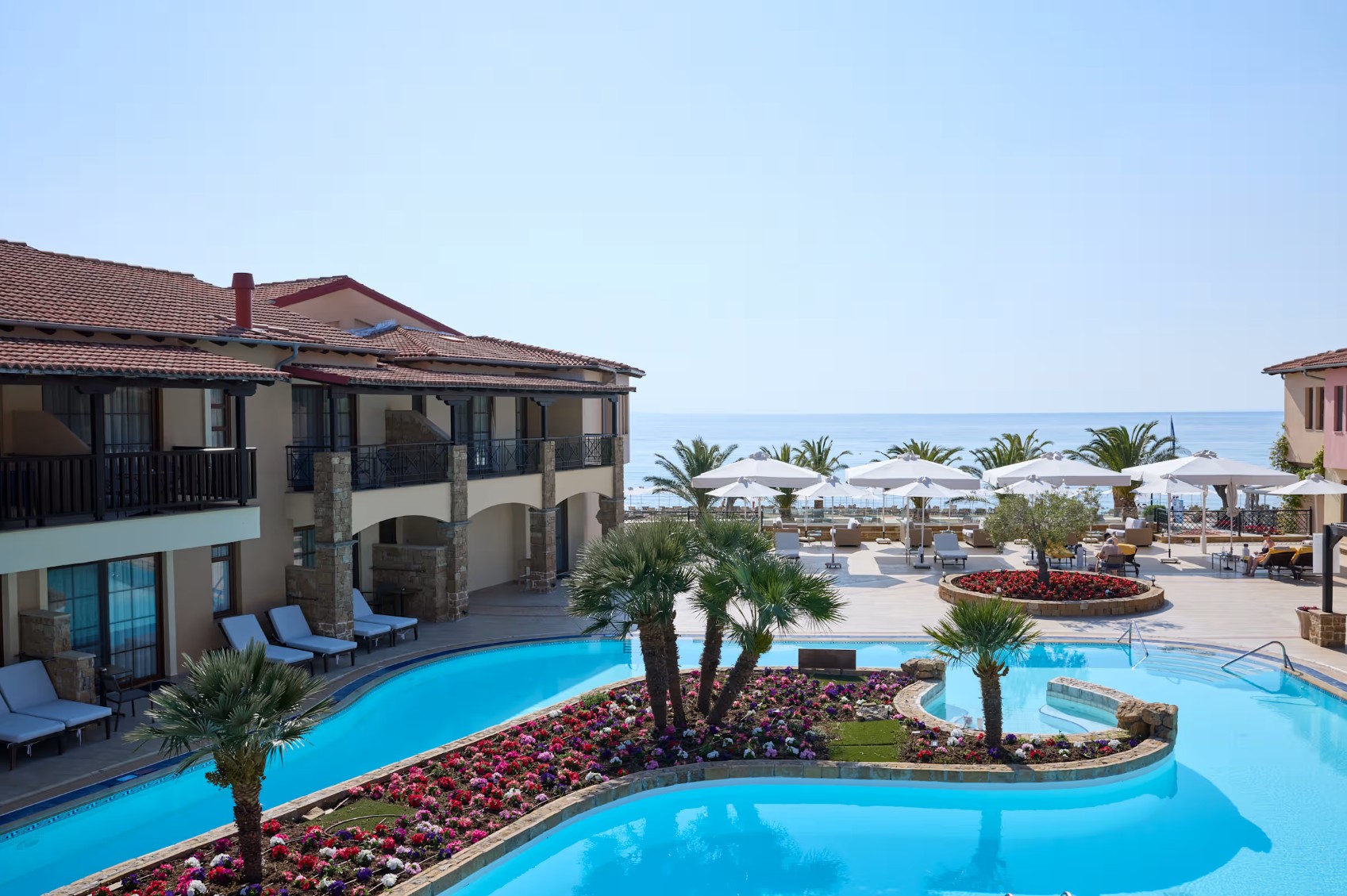 Chalkidiki - Elia | TOP 7 | Direkt am flach abfallenden Sand-/Kiesstrand in einer Bucht gelegen, macht diese sympathische Hotelanlage Ihren Urlaub mit vielen Details innerhalb des Resorts unvergesslich für Groß und Klein. Entspannung bietet u. a. der exzellente Spa- und Wellnessbereich.