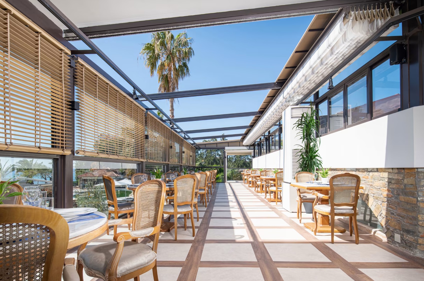 - Ansprechend und modern eingerichtet mit individueller Klimaanlage, Bad mit Badewanne und separater Duschkabine, Kühlschrank, Telefon, Sat.-TV, Spüle, Wasserkocher, Bademänteln und Hausschuhen, Safe und Wi-Fi (jeweils inklusive), Insektenschutz an Türen und Fenstern, Balkon oder Terrasse zur Landseite (DSU). Wahlweise auch mit Pool-/seitl. Meerblick (2PW/2ID) oder zu bestimmten Terminen als Seniorenzimmer mit Poolblick (2ZP/55+) buchbar.