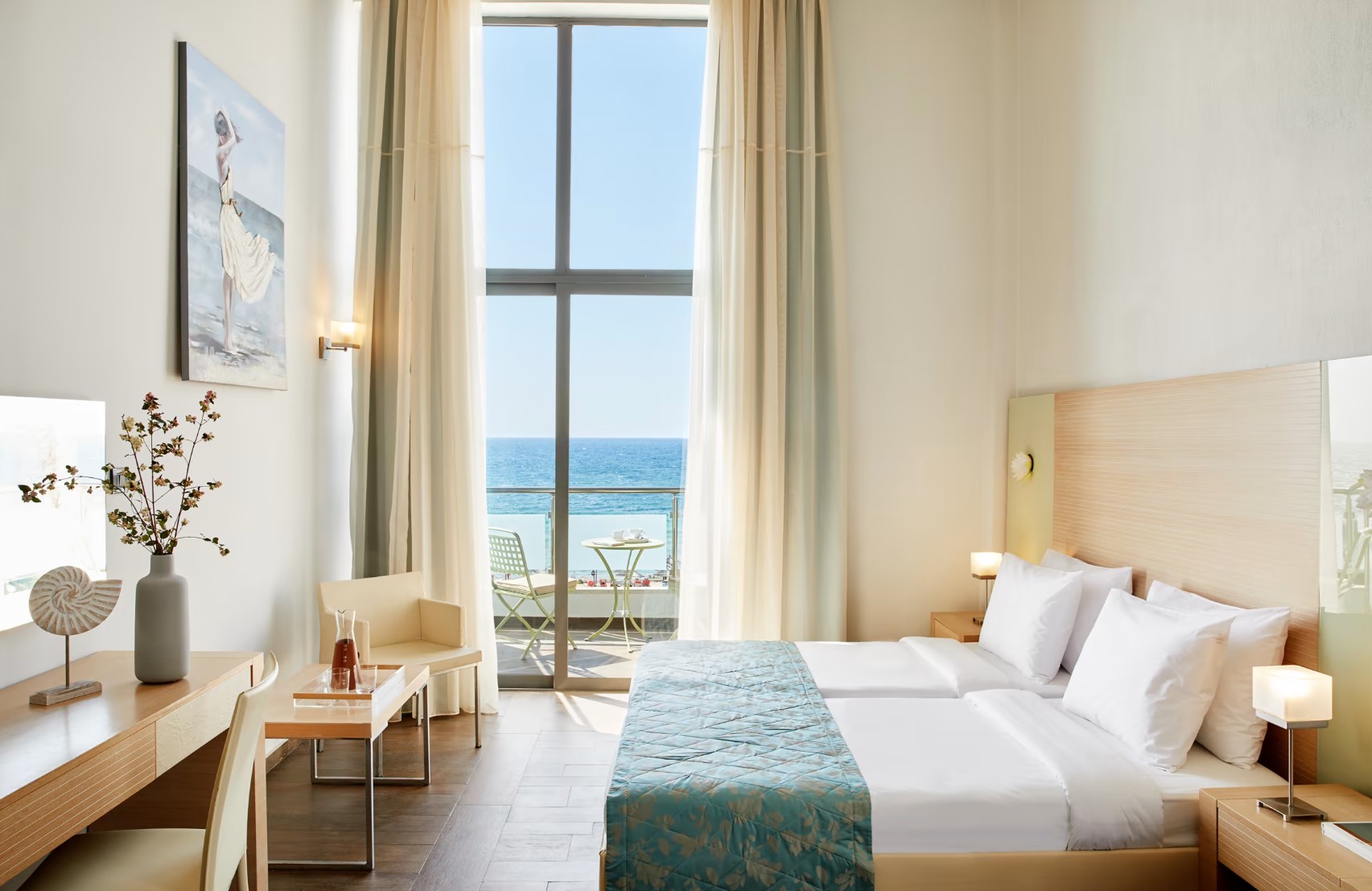 - Doppel, kombinierter Wohn-/Schlafraum, 1 Bad, Dusche oder Badewanne, Haartrockner, Klimaanlage, zentral gesteuert, Safe, 1 TV (Sat-TV), Kühlschrank, Balkon oder Terrasse (möbliert)