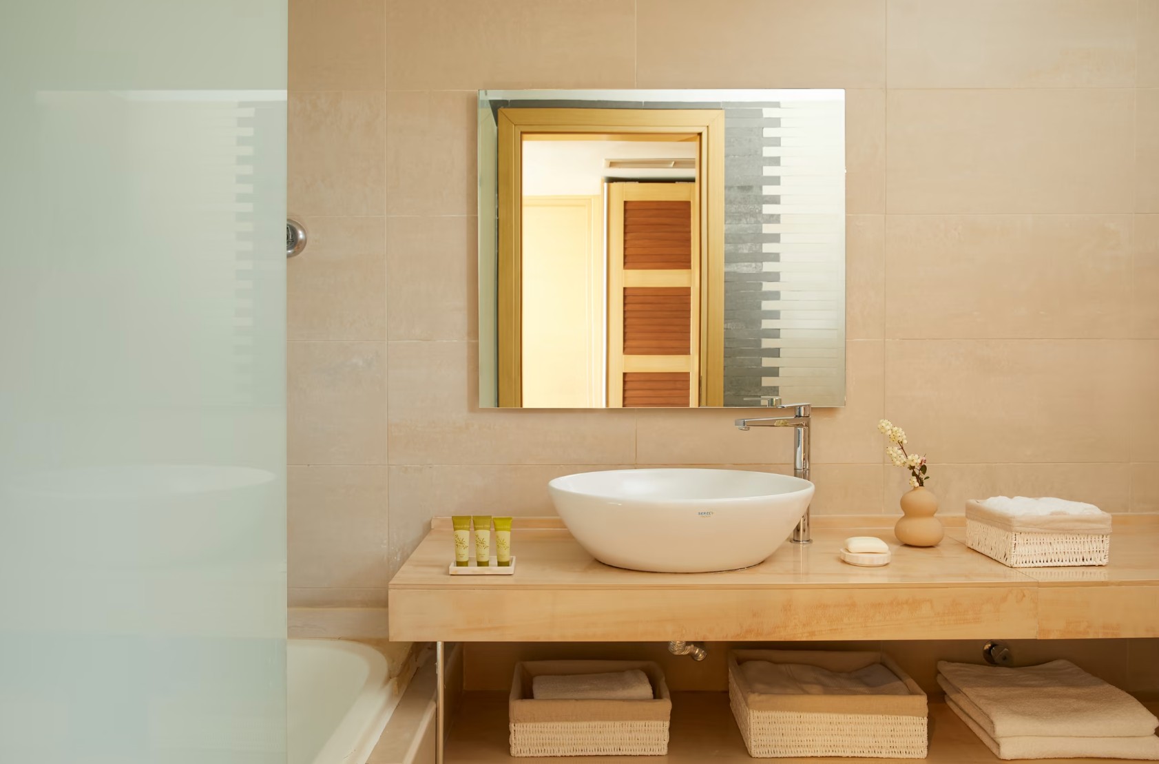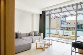 - Suite, 1 separates Schlafzimmer, kombinierter Wohn-/Schlafraum, Sofabett, 1 Bad, Dusche oder Badewanne, WC, Haartrockner, Klimaanlage, zentral gesteuert, Safe, 1 TV (Sat-TV), Kühlschrank, Balkon oder Terrasse (möbliert)