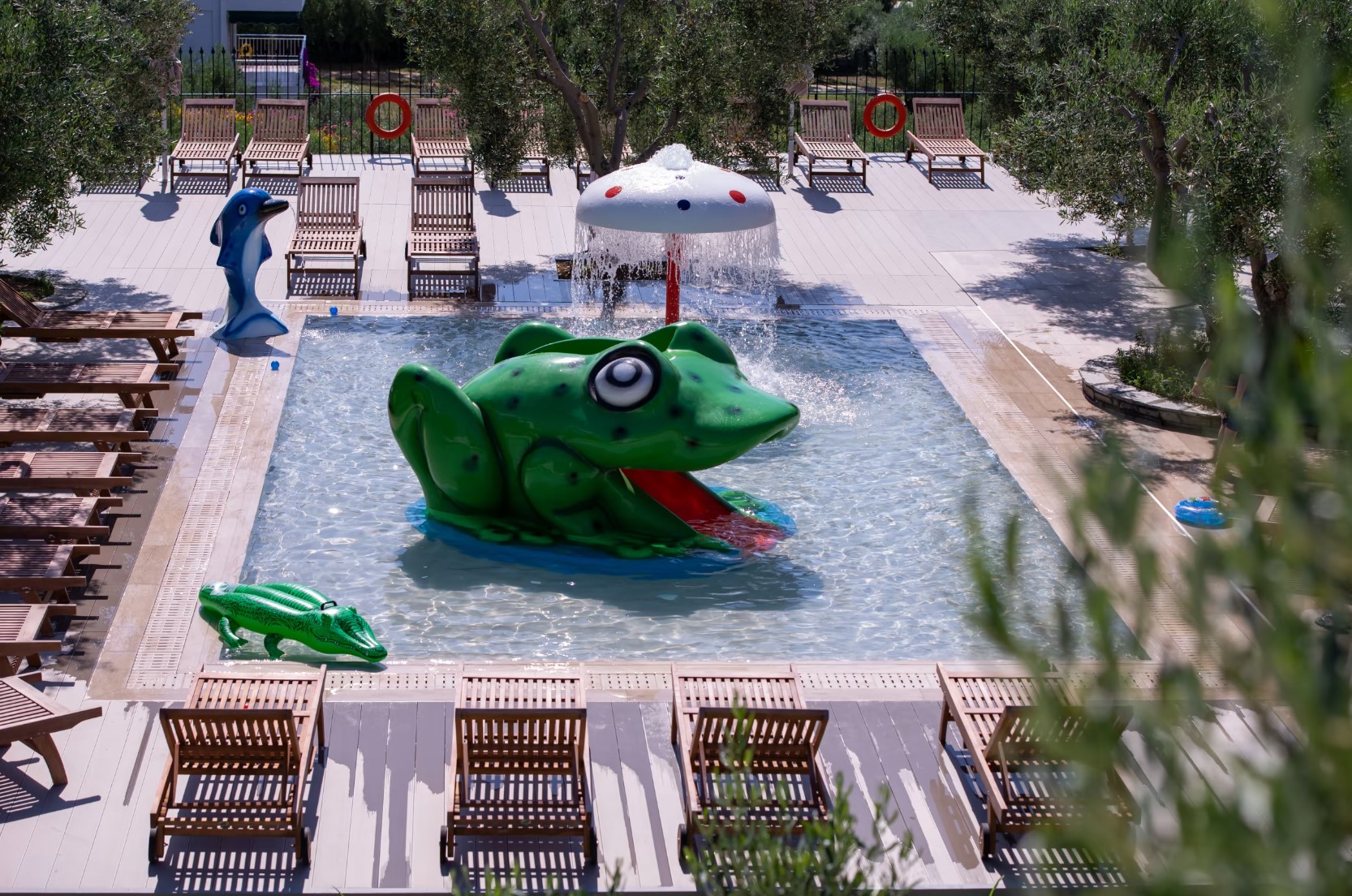 - Ebenfalls mit Blick auf das Meer befinden sich im Außenbereich der Swimmingpool, ein separater Kinderpool mit Sonnenterrasse sowie die Poolbar "Aegean".