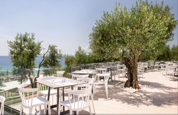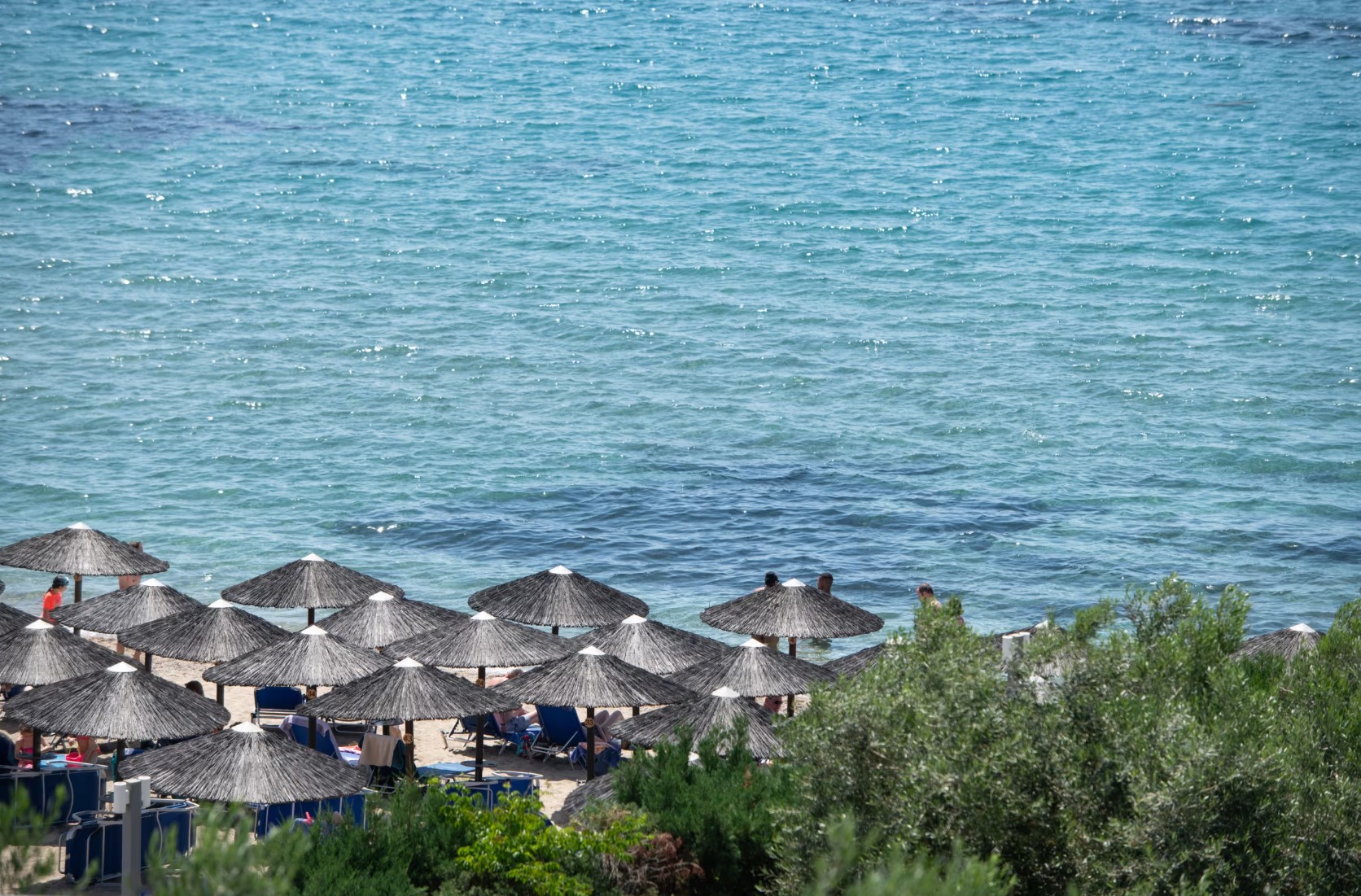 Chalkidiki - Gerakini | TOP 3 | Die liebevoll geführte Anlage befindet sich etwas oberhalb des Sand-/Kiesstrandes, welcher über wenige Stufen erreichbar ist. Die grüne Umgebung und der traumhafte Ausblick auf das türkisblaue Meer versetzen einen direkt in Urlaubsstimmung.