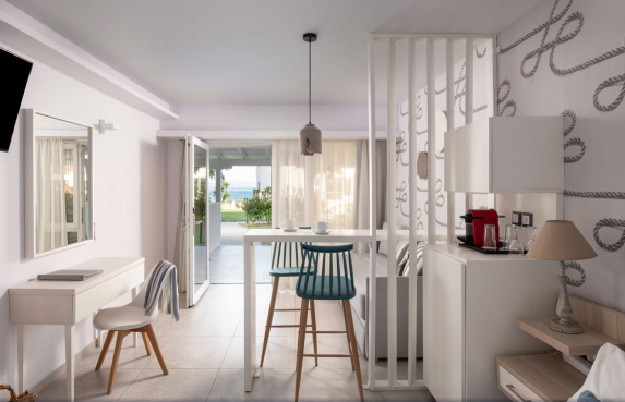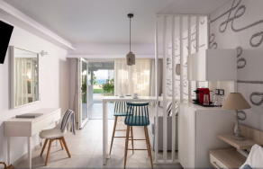 - Bei gleicher Ausstattung wie die Juniorsuite sind die Suiten Meerblick ebenfalls renoviert, jedoch mit kombiniertem Wohn-/Schlafraum mit Schlafsofa und separatem Schlafzimmer (S2M).