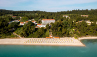 Chalkidiki - Ouranoupolis | Die Hotelanlage Akrathos Beach wurde im Stil eines griechischen Klosters erbaut und liegt idyllisch am Hang inmitten von Olivenbäumen. Genießen Sie von hier auch herrliche Aussichten.