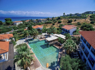 Chalkidiki - Afitos/ Athitos Beach | Das auf einem Hügel gelegene und von Natur umgebene Cora Hotel & Spa Resort ist eine Oase der Ruhe. Der Nahe gelegene, beschauliche Ort Afytos mit herrlicher Aussicht auf die Küste lädt zum Bummeln ein. Die Anlage ist durch eine Küstenstraße vom Meer getrennt, so ist der der Sand-/Kiesstrand in etwa 100 m Entfernung gut erreichbar.