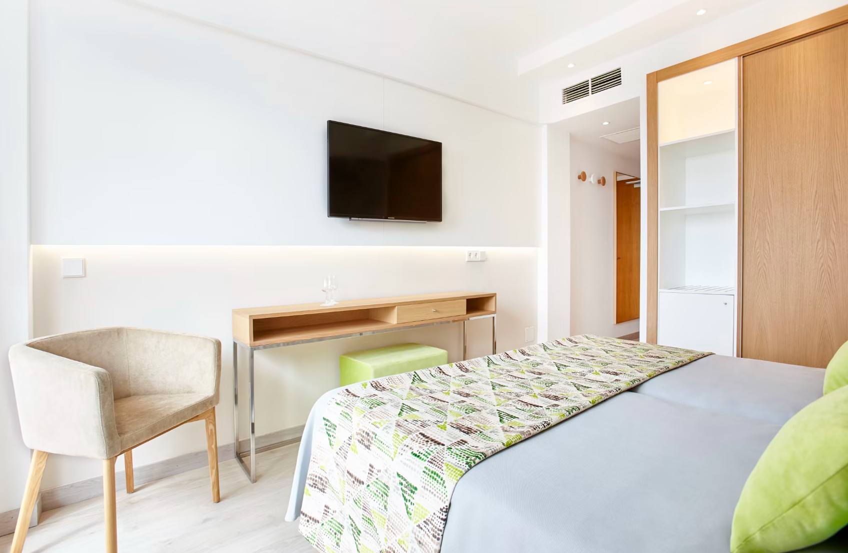 - Doppelzimmer, im Hauptgebäude, Meerseite, Meerblick, ca. 21 m², letzte Teilrenovierung 2019, Gesamtanzahl der Räume in diesem Zimmertyp: 1, Aufteilung wie folgt: 1 Schlafzimmer, 2 Einzelbetten, Babybett: ohne Gebühr, Reservierung notwendig, Klimaanlage: ohne Gebühr, individuell regelbar, zentral gesteuert, kalt, warm, Fußboden: Laminat, Safe: ohne Gebühr, Schreibtisch, Kühlschrank: ohne Gebühr, Telefon, Internet: WLAN/WiFi: ohne Gebühr, Fernseher: Flatscreen, deutsches Programm, Sat-TV, Reinigungsservice: täglich, ohne Gebühr, Badewanne, WC, Föhn, Balkon: mit Sitzgelegenheit
