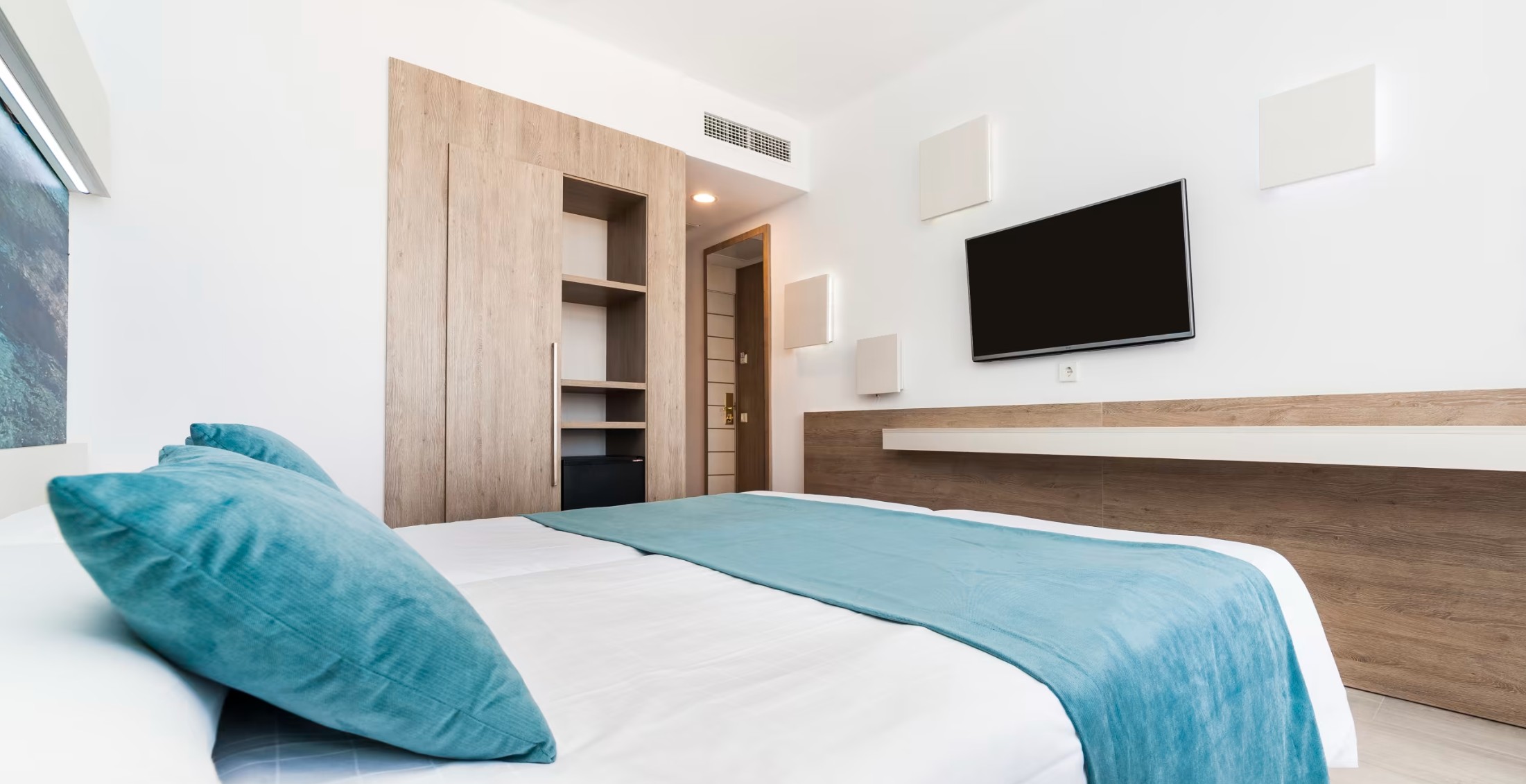 - Doppelzimmer, Mindestalter im Zimmer: 16 Jahre, ca. 14 m², letzte Komplettrenovierung 2016, Gesamtanzahl der Räume in diesem Zimmertyp: 1, Aufteilung wie folgt: 1 Schlafzimmer, Klimaanlage: ohne Gebühr, zentral gesteuert, kalt, Fußboden: Fliesenboden, Safe: gegen Gebühr, Minibar: gegen Gebühr, Telefon, Internet: WLAN/WiFi: ohne Gebühr, Fernseher: deutsches Programm, Sat-TV, Reinigungsservice: ohne Gebühr, Dusche, WC, Föhn, Balkon: mit Sitzgelegenheit