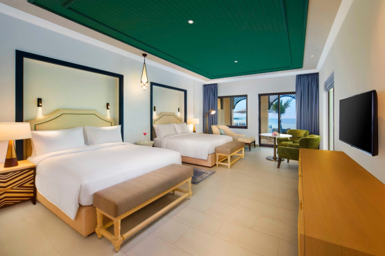 - Doppelzimmer, Nichtraucherzimmer, im Hauptgebäude, Meerblick, ca. 50 m², Gesamtanzahl der Räume in diesem Zimmertyp: 1, 2 Queen Size Betten (150x180cm), Klimaanlage: individuell regelbar, Fußboden: Teppichboden, Safe, Sofa, Schreibtisch, Bügeleisen, Bügelbrett, Kaffee-/Teezubereiter, Minibar, Telefon, Internet: WLAN/WiFi, Fernseher: Flatscreen, Roomservice, Reinigungsservice, Dusche, Badewanne, Bademantel, Slipper, Föhn, Kosmetikspiegel, Balkon: mit Sitzgelegenheit, Nebenkosten: Kaution : 130 EUR