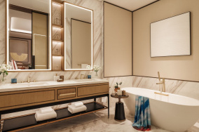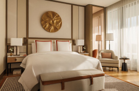 - Bademäntel, Slipper, Strandtasche, luxuriöse Pflegeprodukte im Bad, Dyson Haartrockner, Smart-TV, Bluetooth Speaker, in-room Safe, Bügeleisen und Bügelbrett, Klimaanlage, Smart Home Control (Lichter, Gardinen, Temperatur), 24-Stunden Room Service, Turndown Service sowie Yogamatten