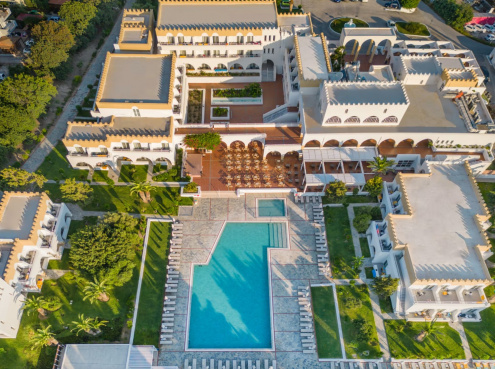 Kos - Psalidi | TOP 2 | Die weitläufige Hotelanlage mit ihren orientalischen Rundbögen und mediterranen Elementen bietet einen wunderschönen Panoramablick und ist bestens für einen Erholungsurlaub geeignet.