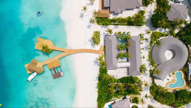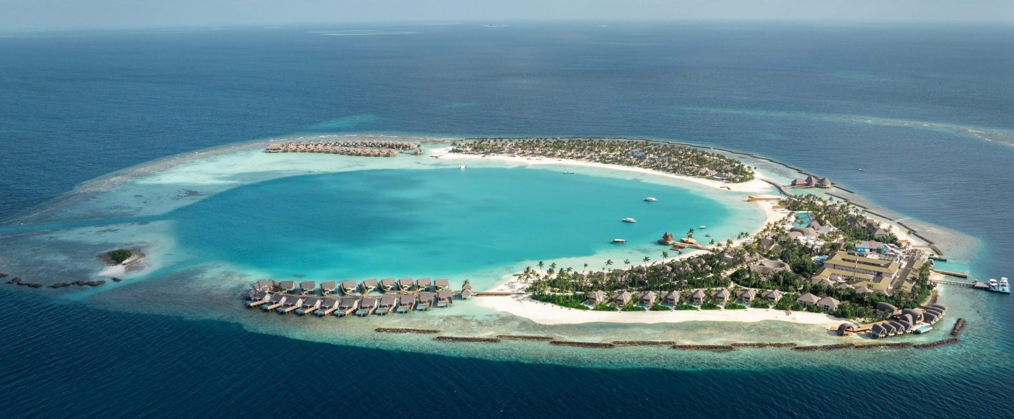 - Auf zwei durch eine Brücke miteinander verbundenen Inseln gelegen: Der ca. 190 m x 430 m großen Insel Madivaru und der ca. 160 m x 510 m großen Insel Kuda Rah