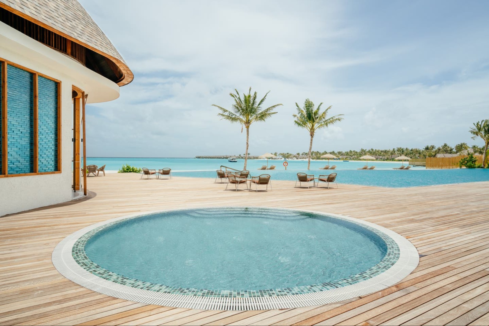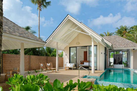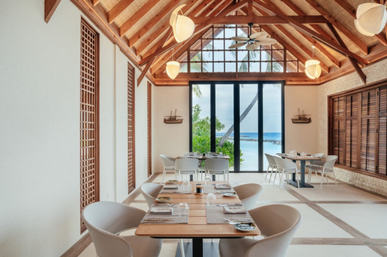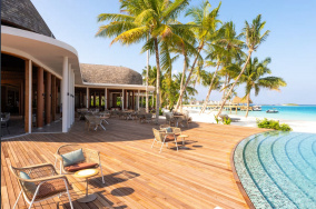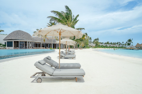 Malediven - Nord Ari Atoll | Inmitten einer großen Lagune gelegen und von weißen Sandstränden umgeben, trifft in diesem Resort eine wunderschöne klassische maledivische Architektur auf zeitgenössische Interieurs. Ein an Meeresbewohnern reiches Hausriff und eine lässige, entspannte Atmosphäre runden das absolute Malediven-Flair dieses idyllischen Rückzugsorts ab.