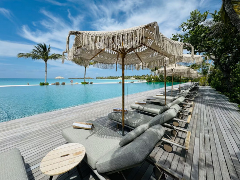 - 1 Pool: Infinity-Pool, Sonnenschirme, Liegen, Badetuch