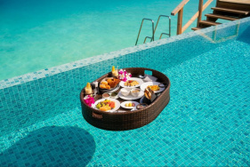 - Halbpension: Frühstück (Buffet), Abendessen (Buffet), Weihnachtsdinner, Silvesterdinner, täglich ein Guthaben von 45 USD für Mahlzeiten in den à-la-carte-Restaurants (nur gültig für vollzahlende Gäste), täglich Wasser in Flaschen in der Villa