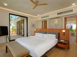- >200 qm, Villa, freistehend, Deluxe, Strandlage, Meerblick, Ankleidebereich, nach oben halb offenes Bad, Badewanne, Regendusche, Außendusche, WC, Bademantel, Badeslipper, Haartrockner, Klimaanlage, Ventilator, Minibar kostenpflichtig, Safe, TV, Bluetooth-Lautsprecher, WLAN, Wasserkocher, Espressomaschine, Kaffee/Tee, Terrasse (möbliert), direkter Strandzugang, Privatpool