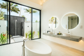 - >200 qm, Villa, freistehend, Strandlage, Ankleidebereich, nach oben halb offenes Bad, Badewanne, Regendusche, Außendusche, WC, Bademantel, Badeslipper, Haartrockner, Klimaanlage, Ventilator, Minibar kostenpflichtig, Safe, TV, Bluetooth-Lautsprecher, WLAN, Wasserkocher, Espressomaschine, Kaffee/Tee, Terrasse (möbliert), direkter Strandzugang, Privatpool